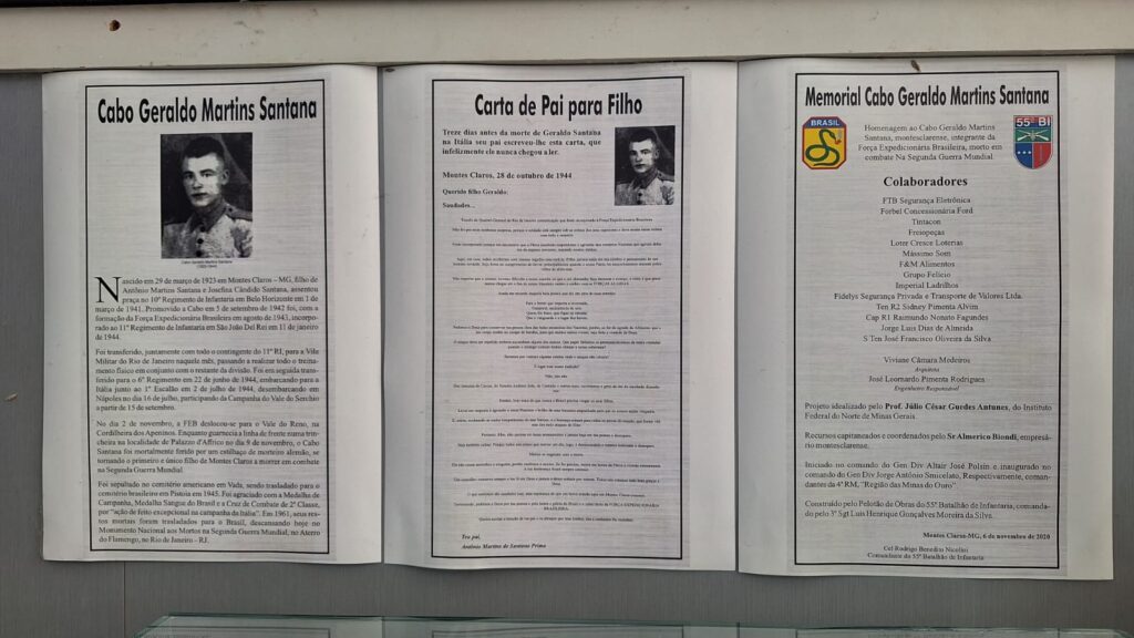 Dos cinco combatentes, de acordo com Júlio, houve apenas uma baixa: “o único que morreu em combate foi o Cabo Geraldo Santana. Foi erguido um monumento no 55º Batalhão de Infantaria, aqui em Montes Claros, em honra à sua bravura. Nossos pracinhas serão sempre lembrados pela sua coragem nessa emblemática missão”.