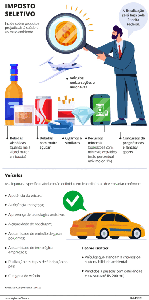 Durante a tramitação da reforma, o presidente da Câmara, Hugo Motta (Republicanos-PB), destacou o trabalho conjunto do Legislativo e do Executivo para construir um modelo com menos burocracia, mais agilidade e menor custo para o cidadão contribuinte. https://www.camara.leg.br/internet/agencia/infograficos-html5/imposto-seletivo-aprovado.